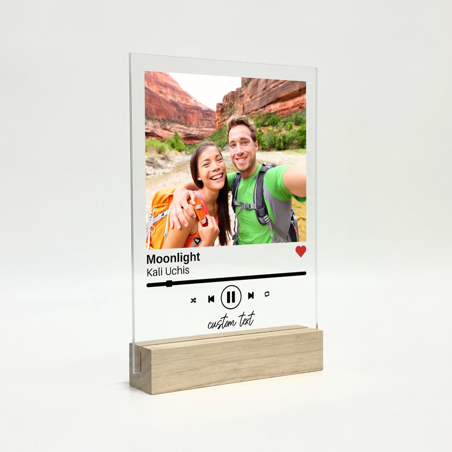 Celebrate your favorite song and memory with our personalized clear acrylic song plaque! Styled like a music player, it features your chosen photo (just like an album cover), song title, and artist name. It’s a sweet, romantic gift that’s perfect for anniversaries, Valentine’s Day, Christmas, or just because.
