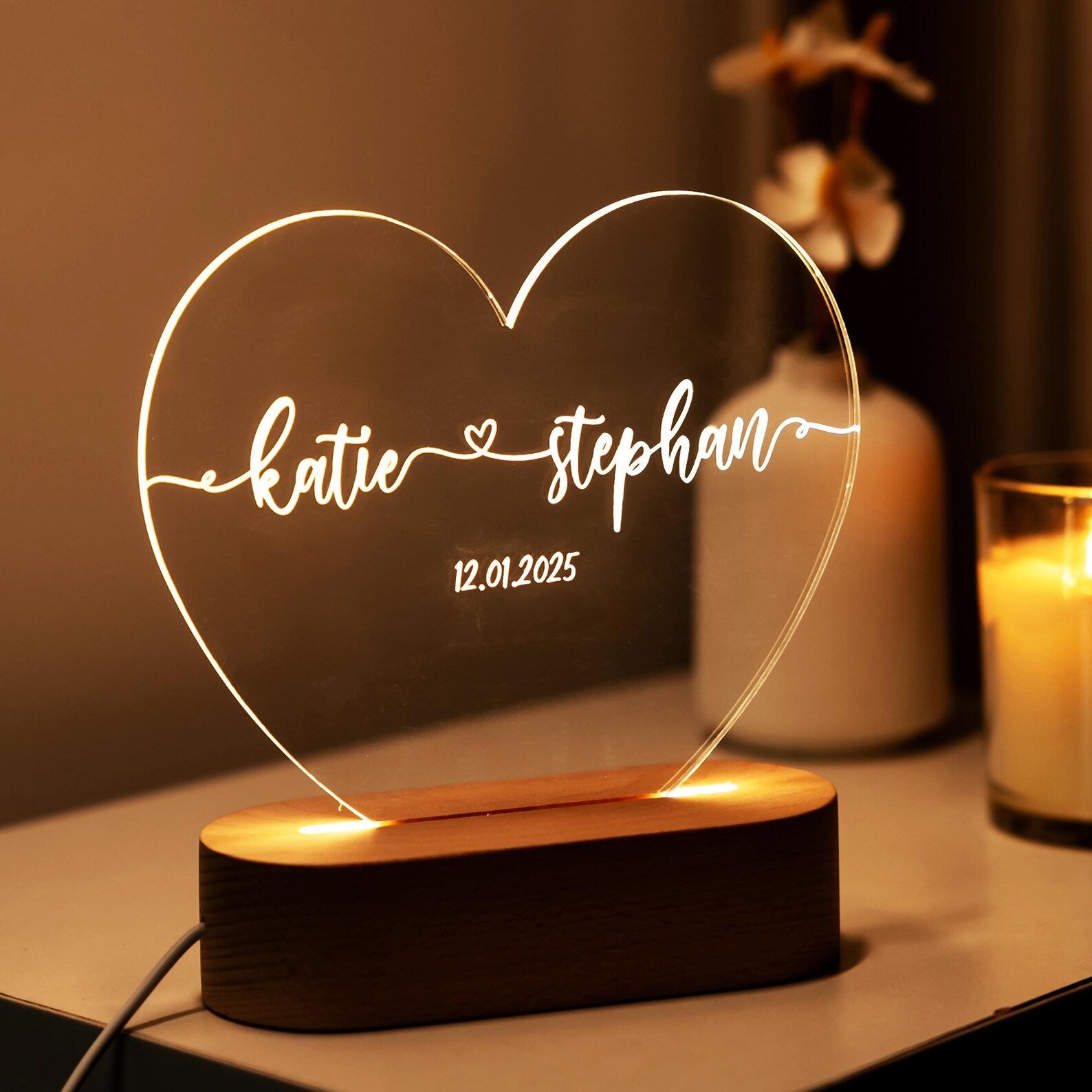 Custom Heart Shaped Night Light
